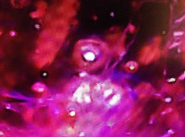 3、低熔点晶体包裹体失去自身的颜色、折射和散射成为无色溶体包裹体。部分低熔点晶体也是它色晶体。经高温优化,这些包裹体不仅失去原有的致色离子价态,同时成为粒度不等的溶体,失去自身的折射与散射。(如图5.2.1-5.2.4)