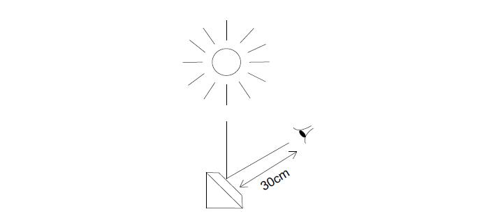 首先最重要的是观察宝石的位置,在合适的光源下宝石需要台面朝上,距离人眼的距离大约在30cm左右(图 4)。