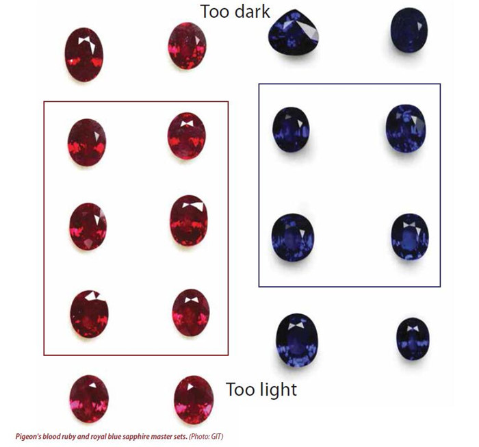 刚玉族比色石:鸽血红红宝石和皇家蓝蓝宝石