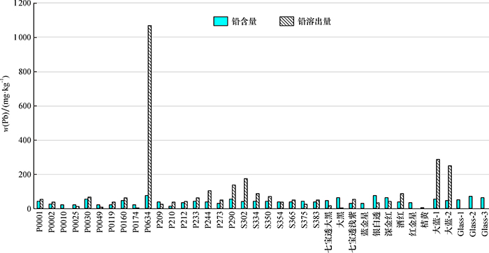 35件珐琅色版经人工汗液浸泡后,外观几乎没有变化。17 件“P+ 色号”系列的珐琅色版有害元素溶出量中共有3件样品( P244、P290、P0634)的铅含量超出了儿童首饰中有害元素溶出量的最大限量。7件“S+ 色号”系列样品的珐琅色版有害元素溶出量中有1件样品(S302)超标。文字命名系列的11件样品中,有2件(大蓝-1和大蓝-2)样品超标。