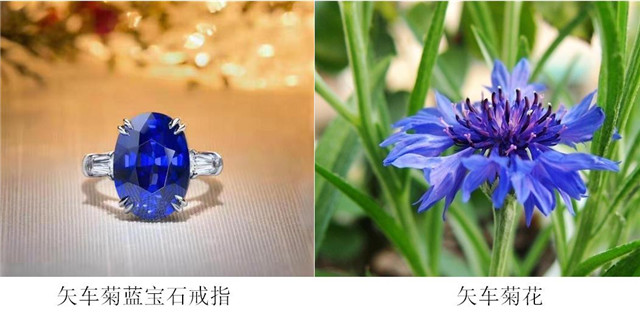 火彩及亮度上。目前市场上的“矢车菊”颜色,透明度较“皇家蓝”高,其火彩和亮度普遍较后者更强。火彩及亮度是宝石品质重要的指标,有火彩的宝石才显得鲜活有灵气,被称为“宝气”“宝光”。火彩使宝石充满活力与生气。“矢车菊”明亮鲜活的火彩使其充满魅力。