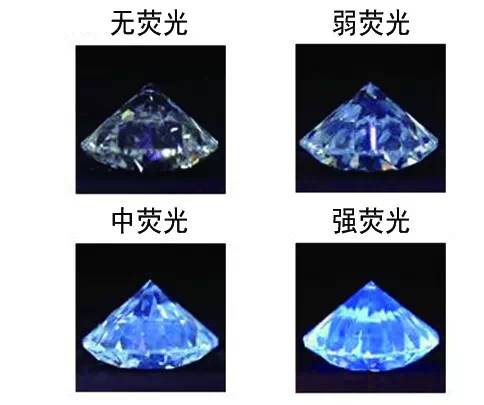 1、在考虑钻石色泽时,同时也应将荧光反应考虑在内,荧光反应是指钻石曝露于紫外线光线下时,所发生的反应颜色光。但是荧光反应甚少对钻石的价值发生影响,除非是具有非常强烈荧光的钻石会影响其透明度及光彩,而产生油蒙状的外表,如此将减损钻石的美丽及价值,但是若其荧光不至使钻石产生油蒙状外观,则不应将其视为一种缺点。