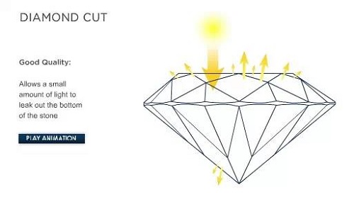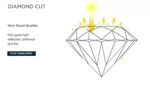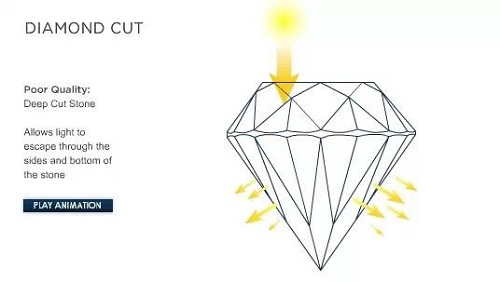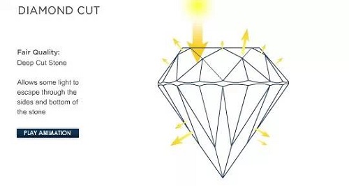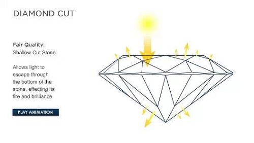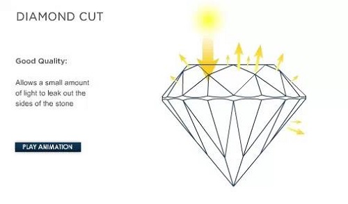切割比例好的钻石能让光源做全反射,切割得太薄或太深的钻石就会把光线由钻底滑走使钻石失去光亮。
