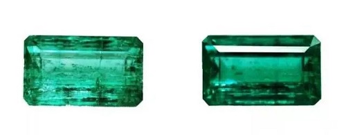 祖母绿注油前(左) 祖母绿注油后(右)