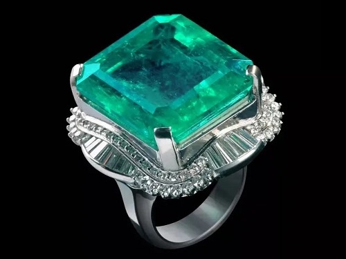 哥伦比亚祖母绿配钻石戒指,祖母绿重约15.01克拉,微油,成交价:1,534,000港币