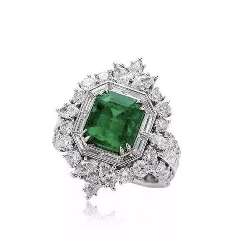 哥伦比亚祖母绿配钻石戒指,祖母绿重约3.02克拉,微油,成交价:177,000港币
