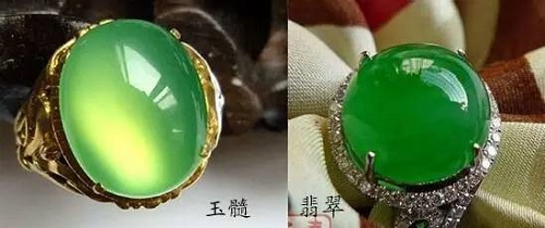 由于玉髓在外观上与翡翠接近,所以很多人将二者混为一谈。要想辨别它们并不难: