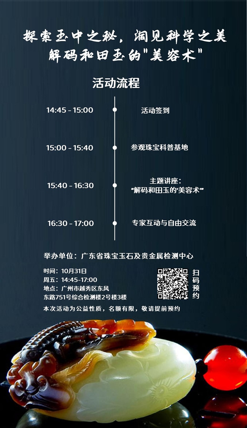 温馨提示: 为保障听讲效果,建议您提前10~15分钟到场。活动现场请遵守秩序,妥善保管个人物品。2025年万圣节,我们不为糖果与装扮,只为揭开一层层神秘的面纱,还原和田玉最本真的容颜。让我们一起,用科学解码美丽背后的真相!